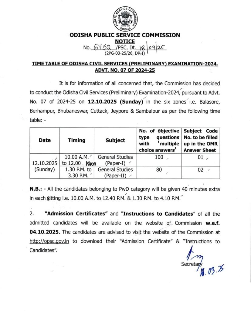 -ଓସିଏସ୍‌ ପରୀକ୍ଷା-୨୦୨୪ ପାଇଁ ଟାଇମ୍‌ ଟେବୁଲ ଜାରି