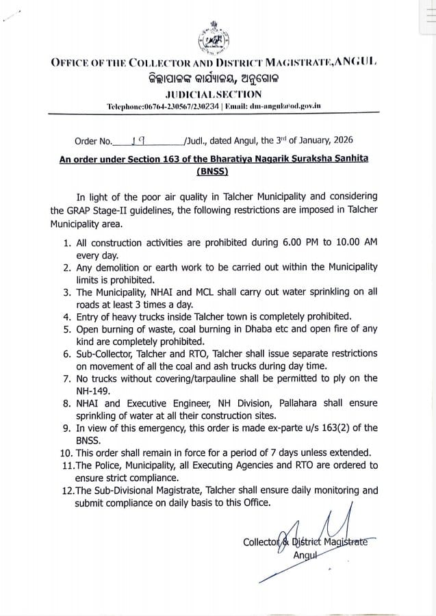 -ପ୍ରଦୂଷଣ ରୋକିବାକୁ ଅନୁଗୁଳ ଜିଲ୍ଲା ପ୍ରଶାସନର କଡ଼ା ନିର୍ଦ୍ଦେଶ