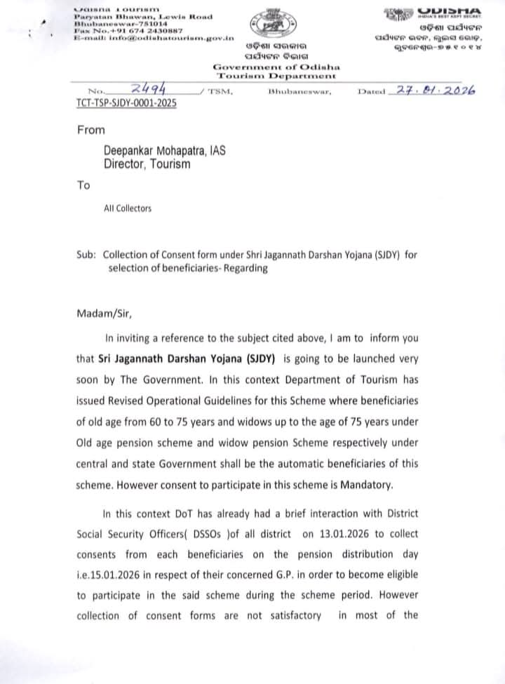 -ଏନେଇ ସମସ୍ତ ଜିଲ୍ଲାପାଳଙ୍କୁ ପର୍ଯ୍ୟଟନ ବିଭାଗର ଚିଠି