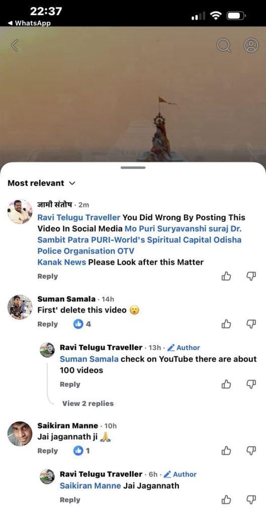 ପୁରୀ: ଶ୍ରୀମନ୍ଦିର ଉପରେ ପୁଣି ଥରେ ଉଡ଼ିଲା ଡ୍ରୋନ୍ ସୋସିଆଲ୍ ମିଡିଆରେ ଶ୍ରୀମନ୍ଦିର ଭିତର ଭିଡିଓ ଭାଇରାଲ୍ ଭିଡିଓରେ ରବି ତେଲଗୁ ଟ୍ରାଭେଲର୍ ଫଟୋ ରହିଛି ତେବେ ଡ୍ରୋନ୍ ଉଡ଼ିବା ଦୃଶ୍ୟ କେବେର ଜଣାପଡ଼ିନାହିଁ