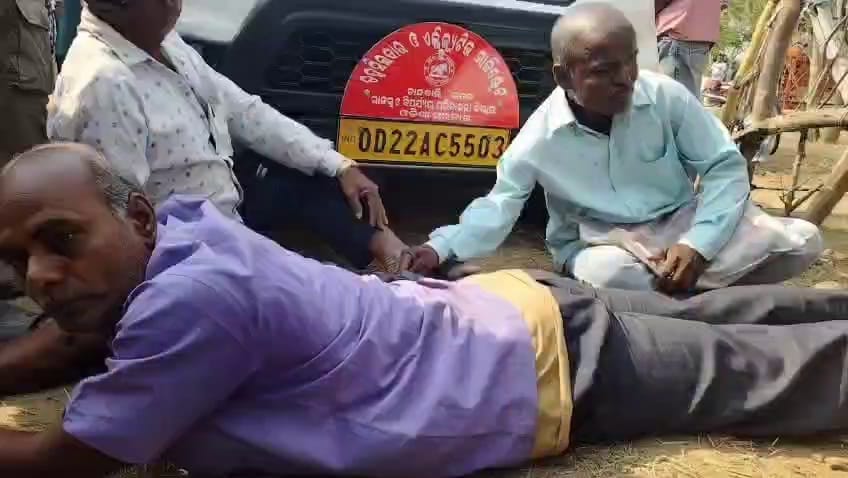 • ରାସ୍ତା ଅବରୋଧ ସମୟରେ ତହସିଲଦାରଙ୍କ ଗାଡ଼ି ଆଗରେ ଶୋଇ ପଡ଼ିଲେ