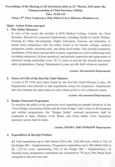 <!-- wp:list --> <ul class="wp-block-list"><!-- wp:list-item --> <li>ପ୍ରତି ଜିଲ୍ଲା, ULB, ବ୍ଲକ ଓ ପଞ୍ଚାୟତରେ ହେବ ବଜେଟ ସଭା</li> <!-- /wp:list-item --> <!-- wp:list-item --> <li>କେନ୍ଦ୍ର ଓ ରାଜ୍ୟ ବଜେଟ୍ ବାବଦରେ ଲୋକଙ୍କୁ ସଚେତନ କରାଯିବ</li> <!-- /wp:list-item --> <!-- wp:list-item --> <li>ଲୋକାଭିମୁଖୀ ପଦକ୍ଷେପ ସମ୍ପର୍କରେ ତୃଣମୂଳ ସ୍ତରରେ ସଚେତନ କରାଯିବ</li> <!-- /wp:list-item --> <!-- wp:list-item --> <li>ବିକାଶ ଓ କଲ୍ୟାଣକାରୀ କାର୍ଯ୍ୟକ୍ରମ ନେଇ ବଜେଟ୍ ସଭା ହେବ</li> <!-- /wp:list-item --></ul> <!-- /wp:list --> <!-- wp:gallery {"linkTo":"none"} --> <figure class="wp-block-gallery has-nested-images columns-default is-cropped"><!-- wp:image {"id":2677,"sizeSlug":"large","linkDestination":"none"} --> <figure class="wp-block-image size-large"><img src="https://www.odtimes.com/wp-content/uploads/2026/03/1000006971.jpg" alt="" class="wp-image-2677"/></figure> <!-- /wp:image --></figure> <!-- /wp:gallery -->