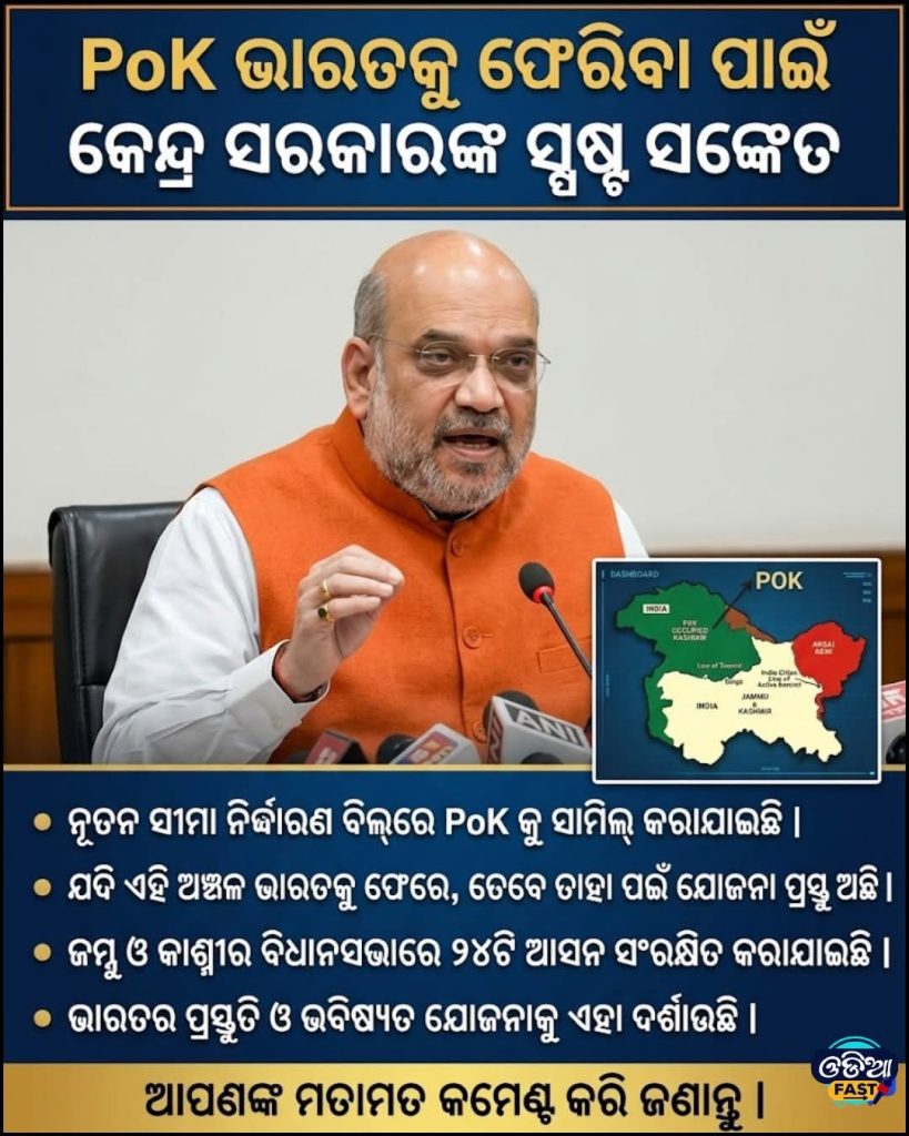 ରିପୋର୍ଟ ଅନୁଯାୟୀ, କେନ୍ଦ୍ର ସରକାର ନୂତନ ପରିସୀମା ନିର୍ଧାରଣ (Delimitation) ବିଲ୍ରେ ପାକିସ୍ତାନ ଅଧିକୃତ କାଶ୍ମୀର (PoK) କୁ ସାମିଲ କରିଛନ୍ତି।