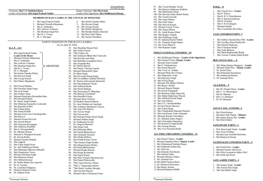 <!-- wp:list --> <ul class="wp-block-list"><!-- wp:list-item --> <li><em>ବିଜେପି ତାଲିକାରେ ଯୋଡ଼ି ହେଲେ ଆପ୍ର ୭ ଜଣ ସାଂସଦ</em></li> <!-- /wp:list-item --> <!-- wp:list-item --> <li><em>ନିକଟରେ ଆପ୍ ଛାଡିଥିବା ୭ ସାଂସଦଙ୍କ ନାଁ ତାଲିକାରେ</em></li> <!-- /wp:list-item --> <!-- wp:list-item --> <li><em>ଲିଷ୍ଟରେ ରାଘବ ଚଢା , ସନ୍ଦୀପ ପାଠକ ଓ ଅଶୋକ ମିତ୍ତଲ</em></li> <!-- /wp:list-item --> <!-- wp:list-item --> <li><em>ହରଭଜନ ସିଂହ , ସ୍ୱାତୀ ମାଲିୱାଲ , ରାଜେନ୍ଦ୍ର ଗୁପ୍ତାଙ୍କ ନାଁ</em></li> <!-- /wp:list-item --> <!-- wp:list-item --> <li><em>ଡକ୍ଟର ବିକ୍ରମଜିତ୍ ସିଂ ସାହାଣୀଙ୍କ ନାଁ ମଧ୍ୟ ବିଜେପି ଲିଷ୍ଟରେ</em></li> <!-- /wp:list-item --> <!-- wp:list-item --> <li><em>ଏବେ ରାଜ୍ୟସଭାରେ ୧୧୩ ହେଲା ବିଜେପି ସାଂସଦଙ୍କ ସଂଖ୍ୟା</em></li> <!-- /wp:list-item --></ul> <!-- /wp:list --> <!-- wp:list --> <ul class="wp-block-list"><!-- wp:list-item --> <li></li> <!-- /wp:list-item --></ul> <!-- /wp:list --> <!-- wp:image {"id":3004,"sizeSlug":"large","linkDestination":"none"} --> <figure class="wp-block-image size-large"><img src="https://www.odtimes.com/wp-content/uploads/2026/04/1000007947-1024x705.jpg" alt="" class="wp-image-3004"/></figure> <!-- /wp:image -->